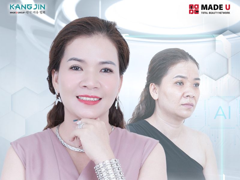 - Bước 2: Mô phỏng kết quả trẻ hóa bằng việc áp dụng trí tuệ nhân tạo KangJin Al Face 4D, xác định lượng collagen cần bổ sung và lập phác đồ cá nhân hóa cho từng khách hàng.