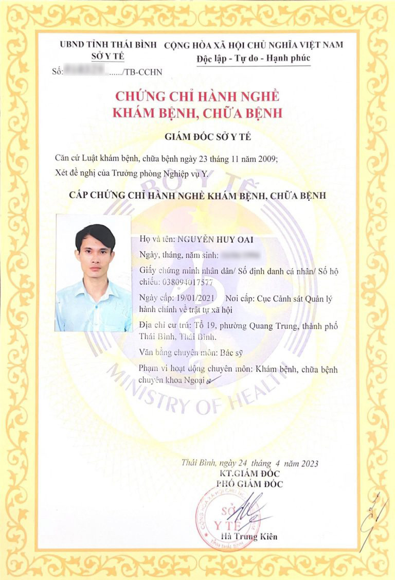 DƯỚI ĐÂY LÀ MỘT SỐ BẰNG CẤP, CHỨNG CHỈ HÀNH NGHỀ CỦA BÁC SĨ NGUYỄN HUY OAI: