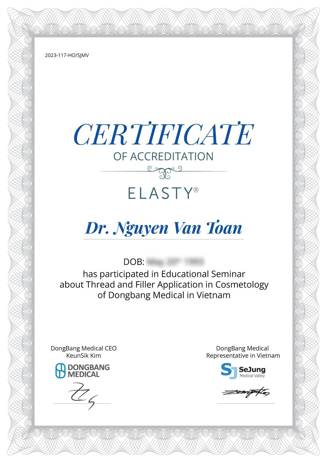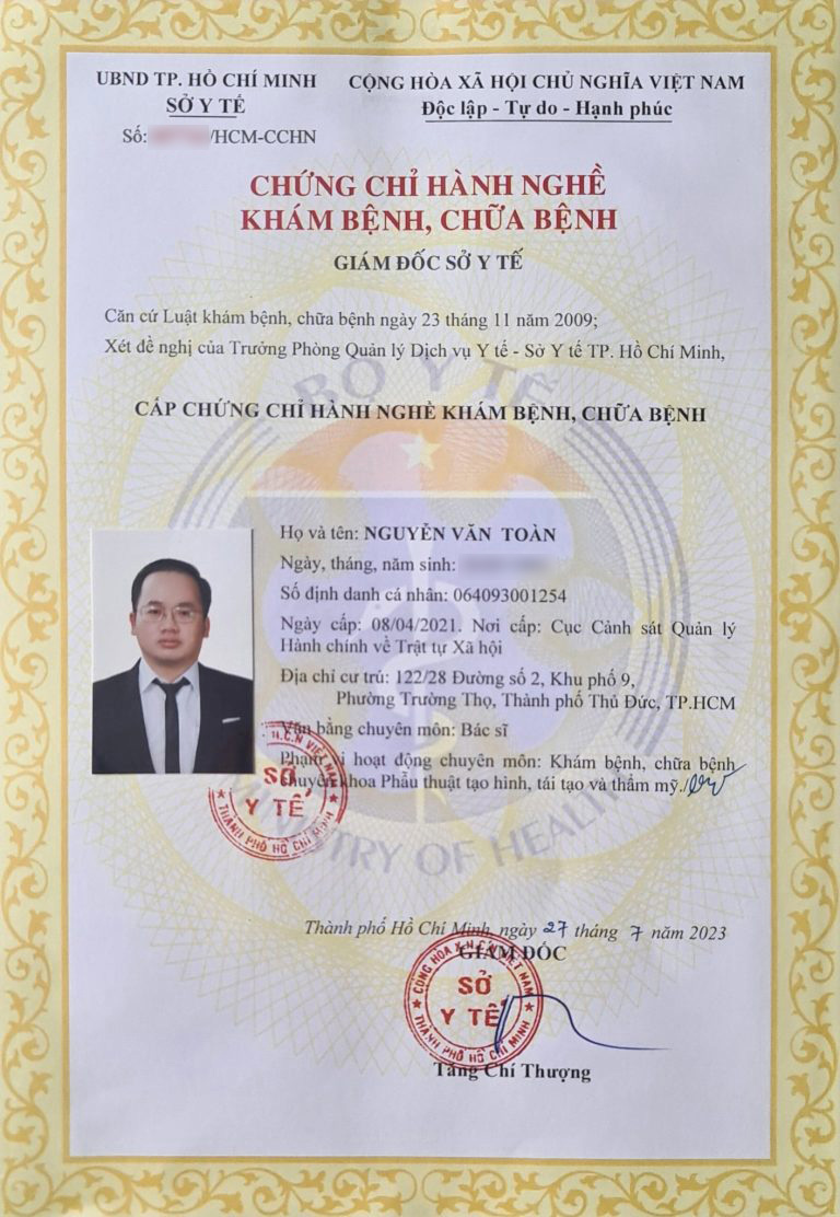 Bác sĩ Nguyễn Văn Toàn là 1 trong những sinh viên ưu tú tốt nghiệp Chuyên khoa 1 Khoa Phẫu Thuật Tạo Hình Tái Tạo Và Thẩm Mỹ – Đại học Y dược thành phố Hồ Chí Minh – Cấp bậc cao trong đào tạo Bác sĩ lĩnh vực thẩm mỹ tại nước ta hiện nay, Bác sĩ Nguyễn Văn Toàn được rất nhiều Bệnh viện thẩm mỹ Quốc tế lớn mời về hợp tác, giúp lấy lại vẻ ngoài rực rỡ cho hàng ngàn khách hàng mỗi năm.