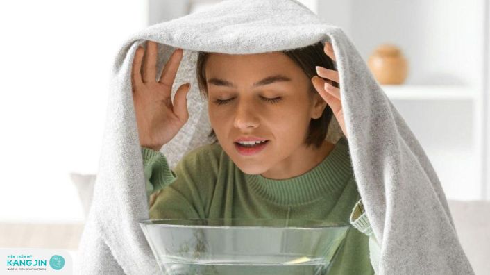 - Bước 4: Xông trong 20 phút rồi rửa mặt lại với nước mát