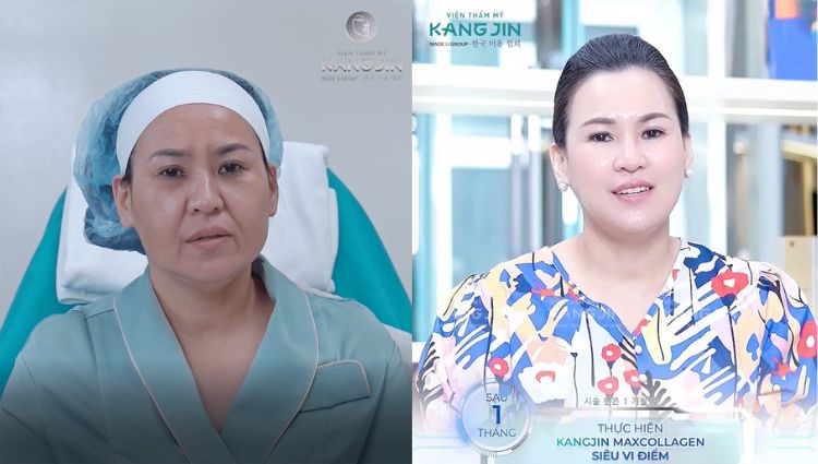 Sau 1 liệu trình dưới đôi bàn tay phù thủy trẻ hóa KangJin, các khuyết điểm trên khuôn mặt của chị đã biến mất hoàn toàn, kéo căng những vùng chảy xệ bằng siêu liệu pháp trẻ hóa KangJin MaxCollagen Siêu Vi Điểm.