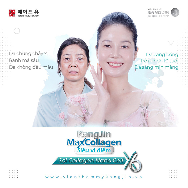 Hiện nay, Viện thẩm mỹ KangJin là địa chỉ duy tại Việt Nam thực hiện trẻ hóa da bằng liệu pháp cấy sợi Collagen Nano Cell X6 được chuyển giao độc quyền từ Hàn Quốc. Hàng trăm nghìn khách hàng và nhiều sao Việt tên tuổi đã trẻ hóa thành công tại KangJin trong nhiều năm qua.