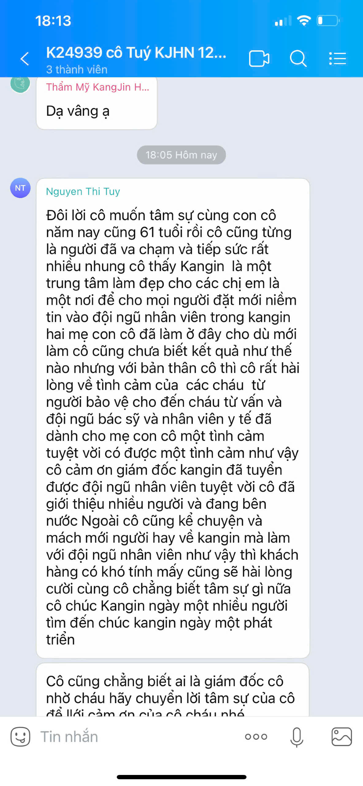 Viện thẩm mỹ KangJin vô cùng biết ơn những tình cảm mà quý khách hàng dành tặng cho KangJin, chúng tối mong rằng khi đến với KangJin khách hàng sẽ có những trải nghiệm tuyệt vời nhất